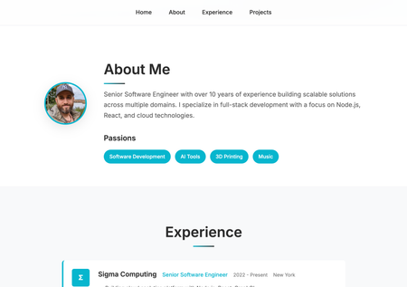 My first task was improving my personal website, a small React application hosted on GitHub Pages. I was hooked from the very first prompt: